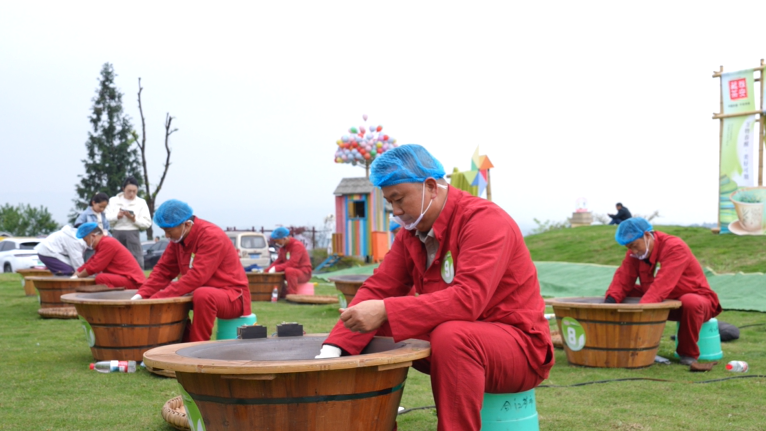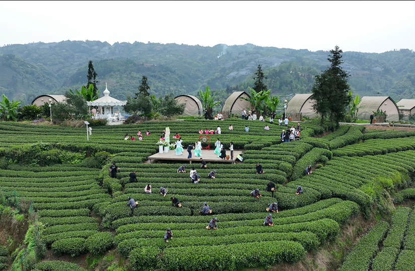 活动现场还设置了多个沉浸式体验区。在“坝坝茶”休闲区,竹编桌椅、竹席铺地,茶艺师用盖碗冲泡当季新茶,来宾或坐或躺,远眺茶山云雾,近品杯中春色。